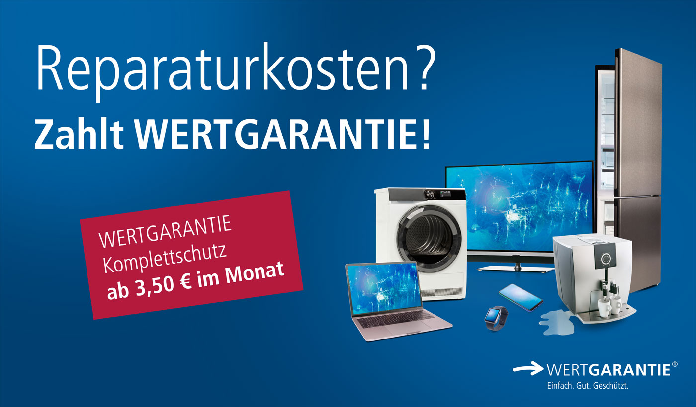 Schützen Sie Ihre Lieblingsgeräte mit dem Rundum-Schutz von WERTGARANTIE! Ob Smartphone, Fernseher oder Waschmaschine – mit WERTGARANTIE haben Sie die perfekte Absicherung für Ihre Technik. Sorgenfrei unterwegs – mit Sicherheit, die begeistert! Und das Beste: Die Abwicklung ist einfach, schnell und fair. Was WERTGARANTIE für Sie leistet WERTGARANTIE übernimmt die Reparaturkosten bei klassischen Schäden wie z.B. Sturz, Wasser, Elektronikschäden oder Verschleiß. Wenn das Gerät gar nicht mehr zu retten ist, beteiligt sich WERTGARANTIE sogar an den Kosten für ein neues. Wer sich für den Premiumschutz entscheidet, profitiert zusätzlich von einer Diebstahlversicherung, Schutz bei Datendiebstahl und Missbrauch. Anders als viele Hersteller-Garantien deckt WERTGARANTIE auch Alltagsprobleme ab – wie z. B. Displaybrüche, Feuchtigkeitsschäden oder Schäden durch unsachgemäße Handhabung. Das bedeutet für Sie: kein Streit mit dem Hersteller, keine versteckten Ausschlüsse. Nur schnelle Hilfe, wenn Sie sie brauchen. Wie funktioniert der Schutz? Sie können WERTGARANTIE gleich bei Ihrem Expert Elektrofachhändler vor Ort direkt beim Kauf abschließen. Der Schutz beginnt sofort, bei gebrauchten Geräten je nach Alter eventuell mit kurzer Wartezeit. Im Schadensfall wenden Sie sich einfach an Ihren Expert Elektrofachhändler, der Sie bei der Abwicklung des Schadensfalles unterstützt. Auch Diebstahlmeldungen laufen unkompliziert: Anzeige bei der Polizei erstatten, Beleg einreichen – den Rest übernimmt WERTGARANTIE. Besonders praktisch: Alles läuft digital. Kein Anstehen, kein Warten in Hotlines. Antworten auf die häufigsten Fragen Was genau ist versichert? Schäden durch Stürze, Wasser, Elektronikprobleme, Verschleiß und sogar Bedienfehler sind abgedeckt. Bei Premiumtarifen auch Diebstahl, SIM-Karten-Missbrauch oder Datenbetrug. Alle Infos finden Sie auf wertgarantie.at Gibt es Wartezeiten? In der Regel beginnt der Schutz sofort. Nur bei älteren gebrauchten Smartphones kann es eine kurze Wartezeit von bis zu drei Monaten geben. Was passiert, wenn eine Reparatur zu teuer ist? Dann beteiligt sich WERTGARANTIE an einem neuen Gerät – entweder durch Auszahlung oder Verrechnung beim Fachhändler. Komplettschutz 3 für 2 Stellen Sie sich Ihre Wunschgeräte selbst zusammen: Mit dem Komplettschutz „3 für 2“ haben Sie die Möglichkeit, drei beliebige Geräte auszuwählen, von denen das preiswerteste kostenlos mitversichert wird. Dabei können Sie sich nicht nur für Einzelgeräte entscheiden – auch Gerätekombinationen, wie etwa ein Kühlschrank mit Gefriertruhe, gelten als ein Gerät. Sie sparen den Beitrag für das günstigste Gerät – Sie versichern also drei Geräte, zahlen aber nur für zwei. Dieses Angebot kann beliebig oft in Anspruch genommen werden, sodass Sie eine Vielzahl an Gerätekombinationen flexibel absichern können. Clevere Lösung WERTGARANTIE ist die clevere Lösung für alle, die sich nicht über kaputte Geräte ärgern und sie sorgenfrei genießen können. Ob Handy, Fernseher oder Haushaltsgerät – mit diesem Geräteschutz sind Sie auf der sicheren Seite. Schnell, unkompliziert und zuverlässig.
